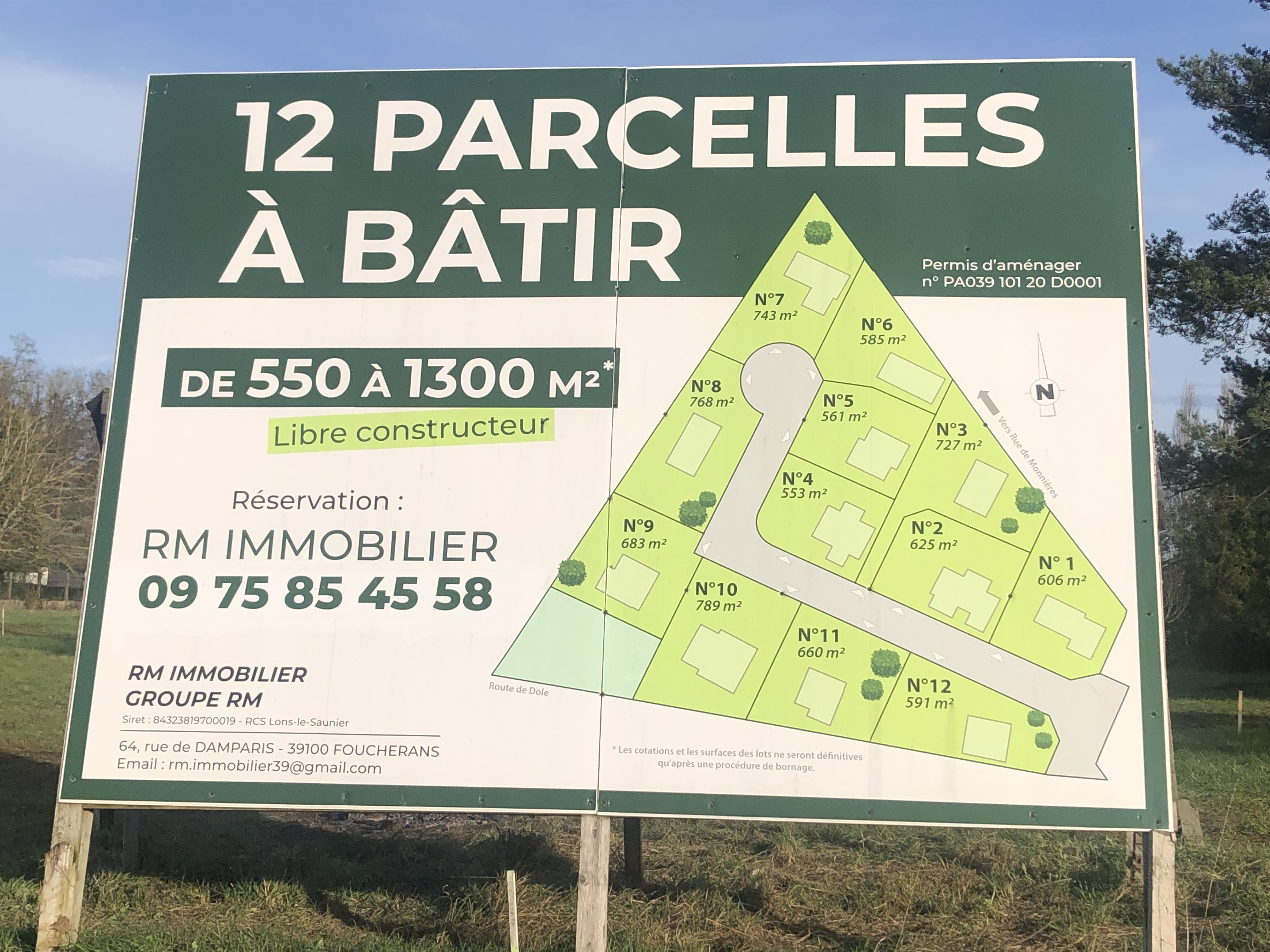 vente du lot n° 9 au sein d'un programme immobilier de 12 parcelles viabilisées (eau, électricité, assainissement, télécommunication) sur la commune de Champvans 39100.
